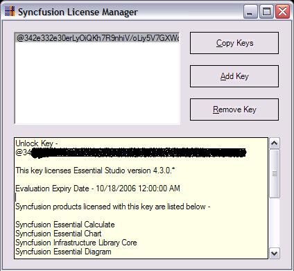 1) Open the LicenseManager from the following location, Start --> All Programs --> Syncfusion --> Essential Studio 4.x.x.xx --> Utilities --> License Manager